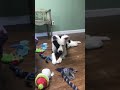 Fuzzie continues to wait for the right home to come along for her. She's had a few applicants who are interested, and although they sound like great people and have great homes to offer a dog, we haven't found the right fit for Fuzzie's needs yet. Here's an update on what we are seeing as far as her personality and what we recommend would be a good fit for her. Fuzzie is one food motivated little pup! She is now accustomed to having to work a little for her meals each day, and she truly does enjoy using her brain to search for and find her food (as shown in this video). Fuzzie takes a while to warm up to people, and still with us, she is startled by sudden movements and doesn't like people reaching to her directly for affection (especially reaching over the top of her head). She tolerates our touch now, but she's not yet a lap dog who will shower you with kisses. So if you want a dog who shows affectionate like a lab, Fuzzie isn't your girl! She is a quiet dog overall, occasionally she'll bark in her crate (probably telling us she needs to potty or is hungry), but there are times she is totally quiet and you can forget she's hanging out nearby. She likes a soft squeaky toy and at times will chew on a nylabone. Overall, she isn't destructive but curious about exploring and investigating areas of the kennel. She did pull a stocking off the wall one day but left it on the floor, didn't chew at it once she sniffed it. She really enjoys her leashed walks each day, and she shows great leash manners. She doesn't pull and stays pretty close to you. She still shows concern and hesitation sometimes with new noises, but she doesn't look to completely run away and looks to us now for guidance. So for someone who wants a dog to take on walks with them without needing any leash training, Fuzzie is your girl! She is totally crate trained and shows that she really likes the security of her own space. We find her lying completely flat on her side, with her head resting on a blanket like a pillow most days. And she's pretty neat, no accidents or spilling of her water bowl. Probably the cutest thing about her that we have observed is when she is alone in the yards, she has moments of zoomies! But, oh dear, if she catches you watching her, she gets embarrassed and immediately stops