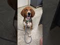 Moose is a big gorgeous one year old, said to be Bloodhound and coonhound. I believe it! Like the lightbulb that just doesn’t brighten all the way, Moose doesn’t quite get everything when it comes to training. But he sure is willing to try and he gives it his all! We aren’t going to give up on his training, because his adorable personality helps us overlook it. He just needs time! he knows how to sit. Hallelujah! Don’t think he knows much beyond that, but we were working on him, trying to catch treats when we toss them. That will take a little more time. Moose is so excited when he sees the dog walkers coming, he can hardly wait to come out. That’s quite a change from when we first got him at the shelter and he would run and hide from everyone. We don’t know much about his background other than he did live with two other dogs, who apparently beat up on him. We absolutely love this boy.We dare you to come and get Moose! 70 pounds, long legs, cute as can be! Also fun in the office!